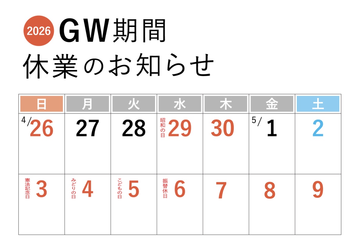 G.W期間休業のお知らせ