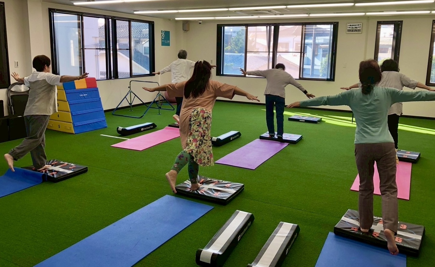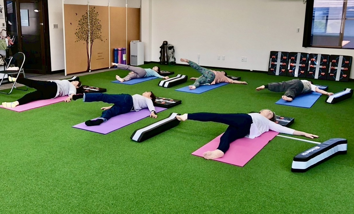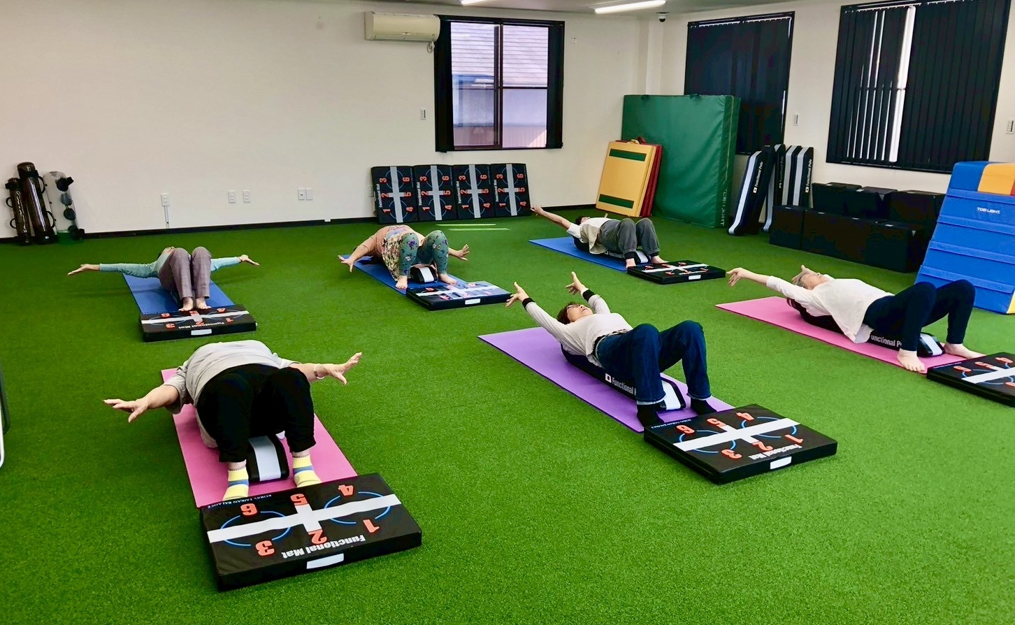 大人クラスストレッチ&体幹トレーニングクラス 普段まったく運動をしない方、体力に自信がない方や腰痛や膝痛がある方でも大丈夫! ストレッチから始めるゆっくりカンタンな体幹トレーニングを中心とした大人向けクラスです。 ファンクショナルマット ファンクショナルポール ファンクショナルクッション チューブ トレーニング内容 まずはストレッチをして全身をほぐすところからスタート。個々の体力やその日の体調に合わせて無理なく体幹トレーニングを行います。普段あまり運動をしていない方も、腰痛や膝痛でカラダを動かす事が難しい方でも、ファンクショナルマットやファンクショナルポールを使ってカンタンな体幹トレーニングの基礎から始めます。 トレーニング風景 その日の体調や関節痛の有無など、個々に合わせて無理なくどなたでも気軽に体幹トレーニングを行えます。 まずは気軽にお試し! ぜひ大人クラスの無料体験にご参加ください。 無料体験申込み 公式LINEからも お問合せ・無料体験受付中!